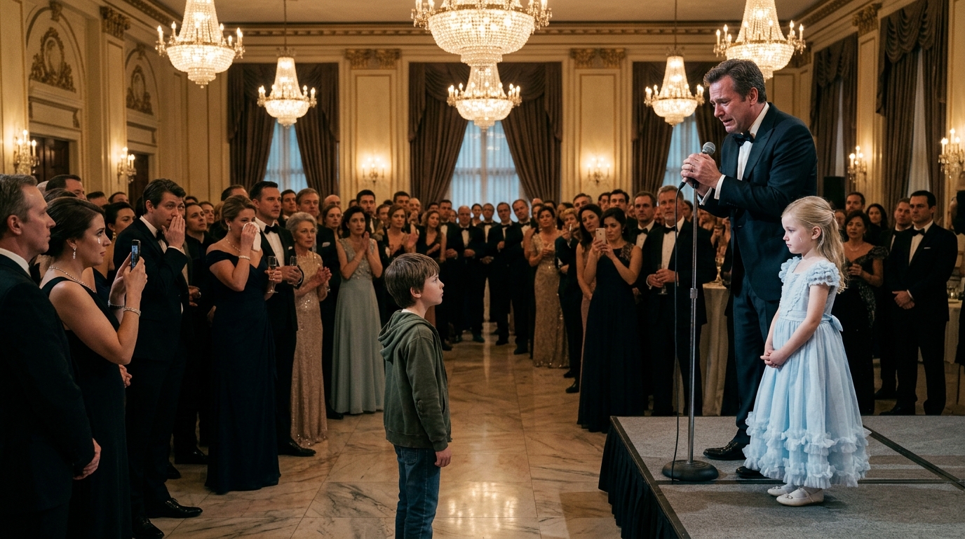 The ballroom was filled with the kind of people who knew how to watch pain politely. Women in diamonds dabbed at their eyes with silk napkins. Men in tailored tuxedos looked down at their champagne because my desperation made them uncomfortable. A few guests raised their phones, pretending they were preserving a touching moment instead of feeding on it.