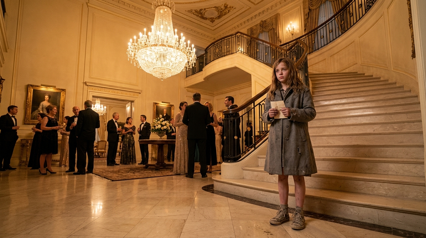 The laughter around the room faltered when the nearest guests noticed her. A few turned openly. Someone near the piano lifted a phone and began recording before they had even decided what kind of scandal this might become.