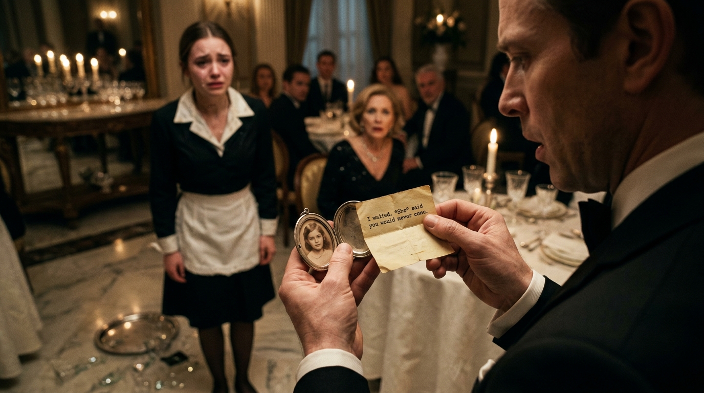 She caught herself on the back of a chair, her fingers white against the polished wood. She was young—too young to have already learned how to swallow humiliation so completely. Her uniform was plain black. Her hair was pinned neatly at the nape of her neck. Her eyes were wet, but she refused to cry in front of us.