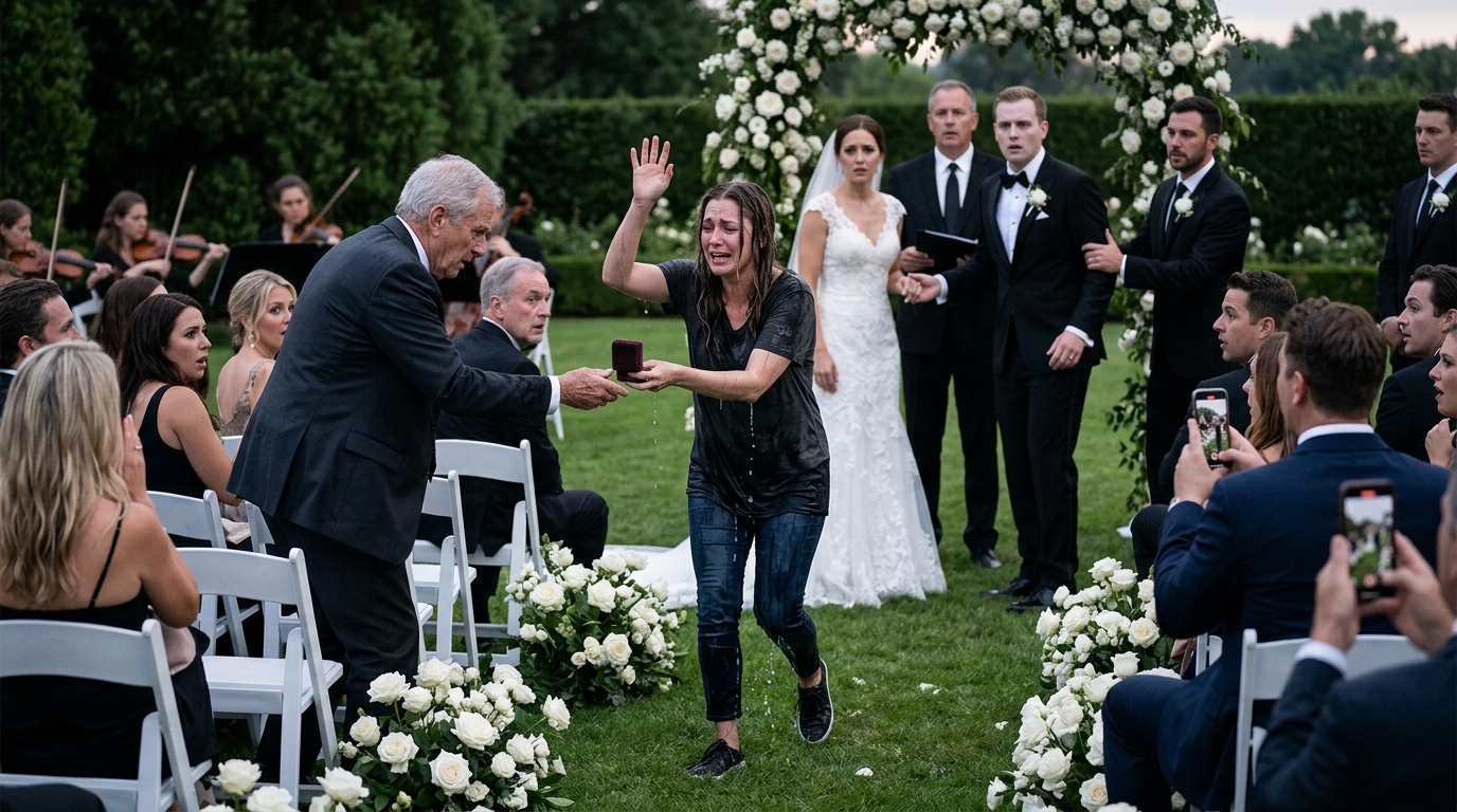 And now a drenched woman stood in the center aisle of my wedding, staring at Adrian as though fear itself had finally learned how to walk upright.